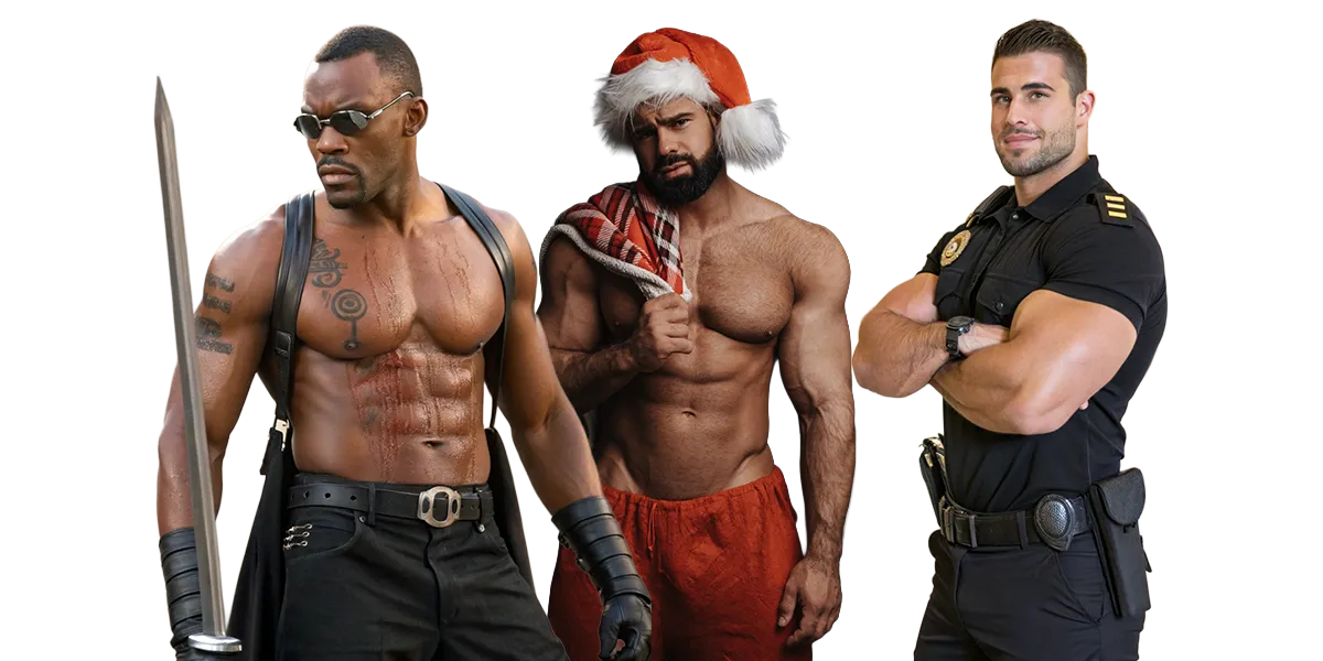 ⛓️ 50 Shades / Dom – 50 Sombras / Amo Dominante | 🎶 Magic Mike – Estilo Magic Mike | 🎅 Sexy Santa – Santa Sexy | 🎭 The Mask (Jim Carrey) – La Máscara (Jim Carrey) | 💘 Latin Lover – Amante Latino | 🎩 Pachuco – Pachuco | 🏨 Hotel Security – Seguridad del Hotel | 🚑 EMT – Paramédico / Urgencias | 🦸 Superhero (Batman, Spiderman) – Superhéroe | 🦹 Villain (Joker, Bane) – Villano | 🧛 Vampire – Vampiro | 🐺 Werewolf – Hombre Lobo
